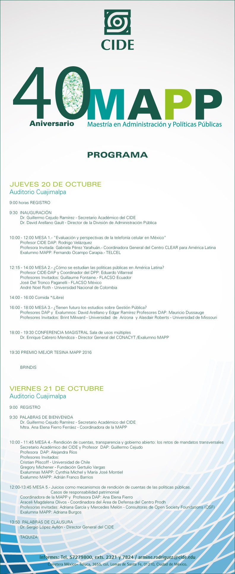 I visited the Centro de Investigación y Docencia Económicas (CIDE) in Mexico City on October 20-21 to participate in events marking the 40th anniversary of their Masters degree in Public Policy and Administration. Details here. I participated in a panel on October 20 that examined the question: Does ‘Public Management studies’ have a future? A recording of my brief comments can be heard here.