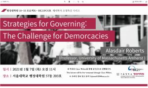 I will give a talk to graduate students in the Graduate School of Public Administration at Seoul National University on January 7, 2021. The topic is: “Strategies for governing: The challenge for democracies.” Powerpoint for the talk here.