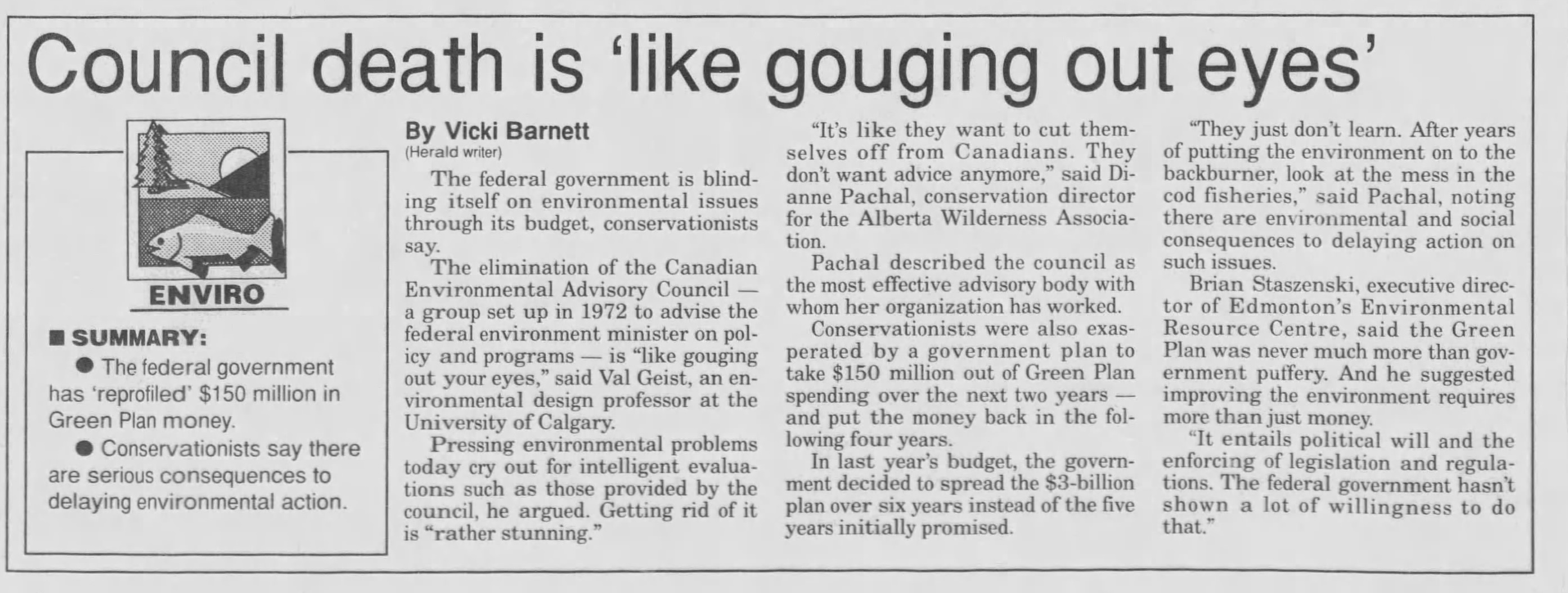 “gouging out your eyes”: Calgary Herald, 26 February 1992, A6.